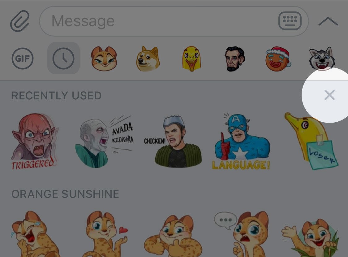 Clear recent stickers on iOS
