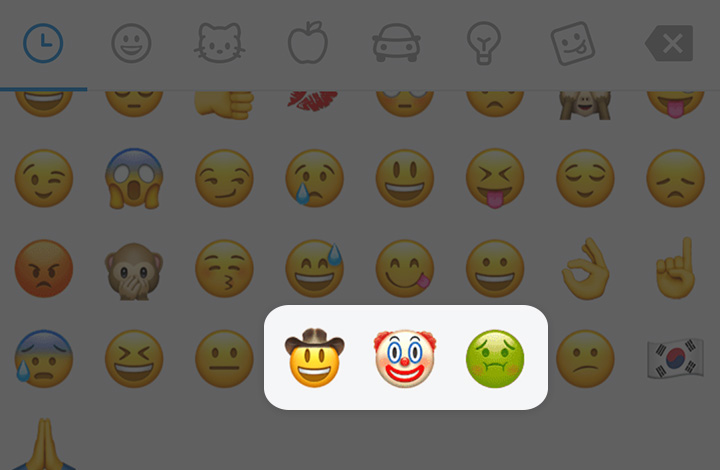 • Back to the important stuff: the cowboy, the clown, and the sick face emoji (also known as the ‘exfoliating green tea mask face’ emoji) have found their way to Android. We support all of them now.